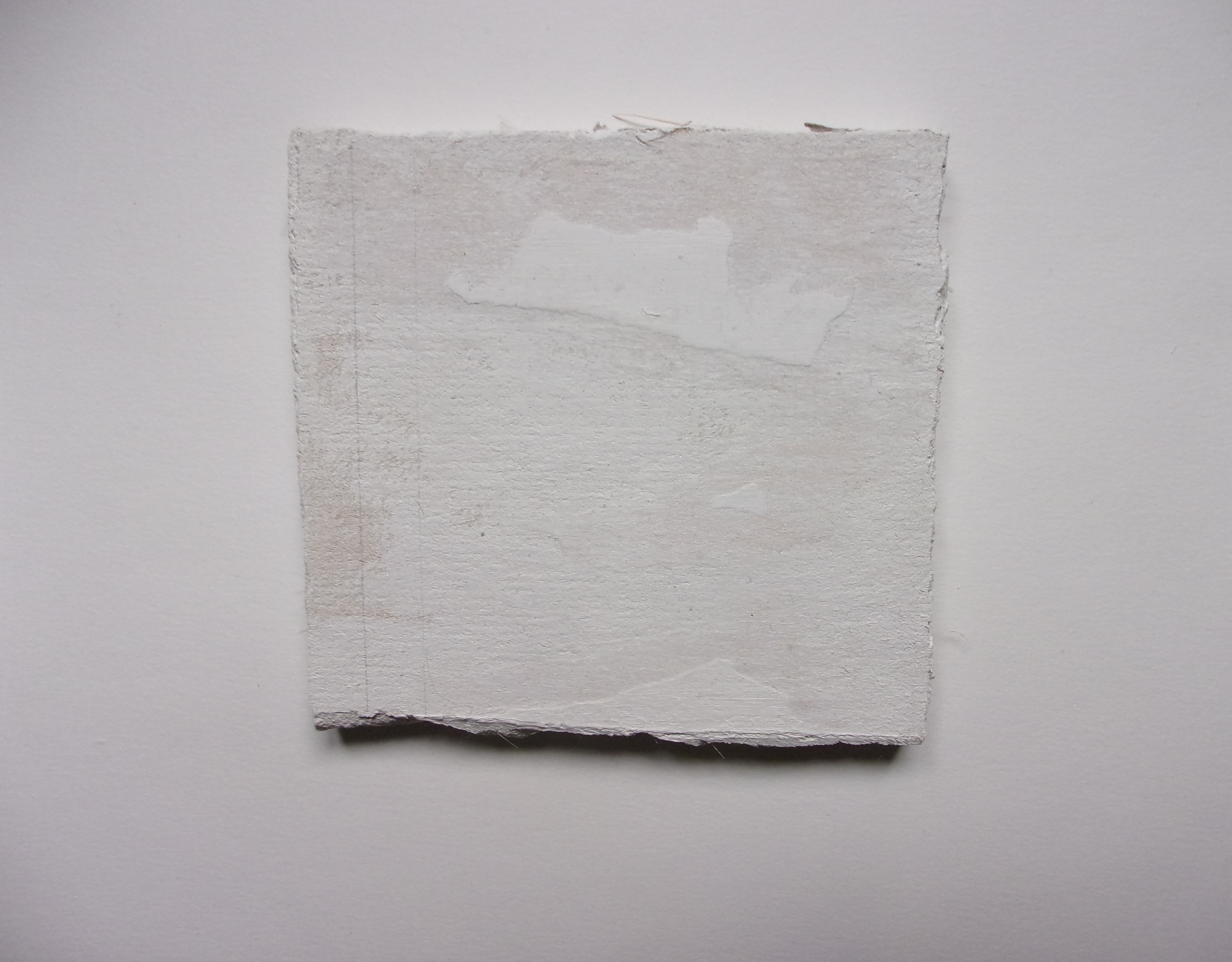 Détail : Morceau de placo peint en blancs de 12,4 x 11,5 x 1,3 cm