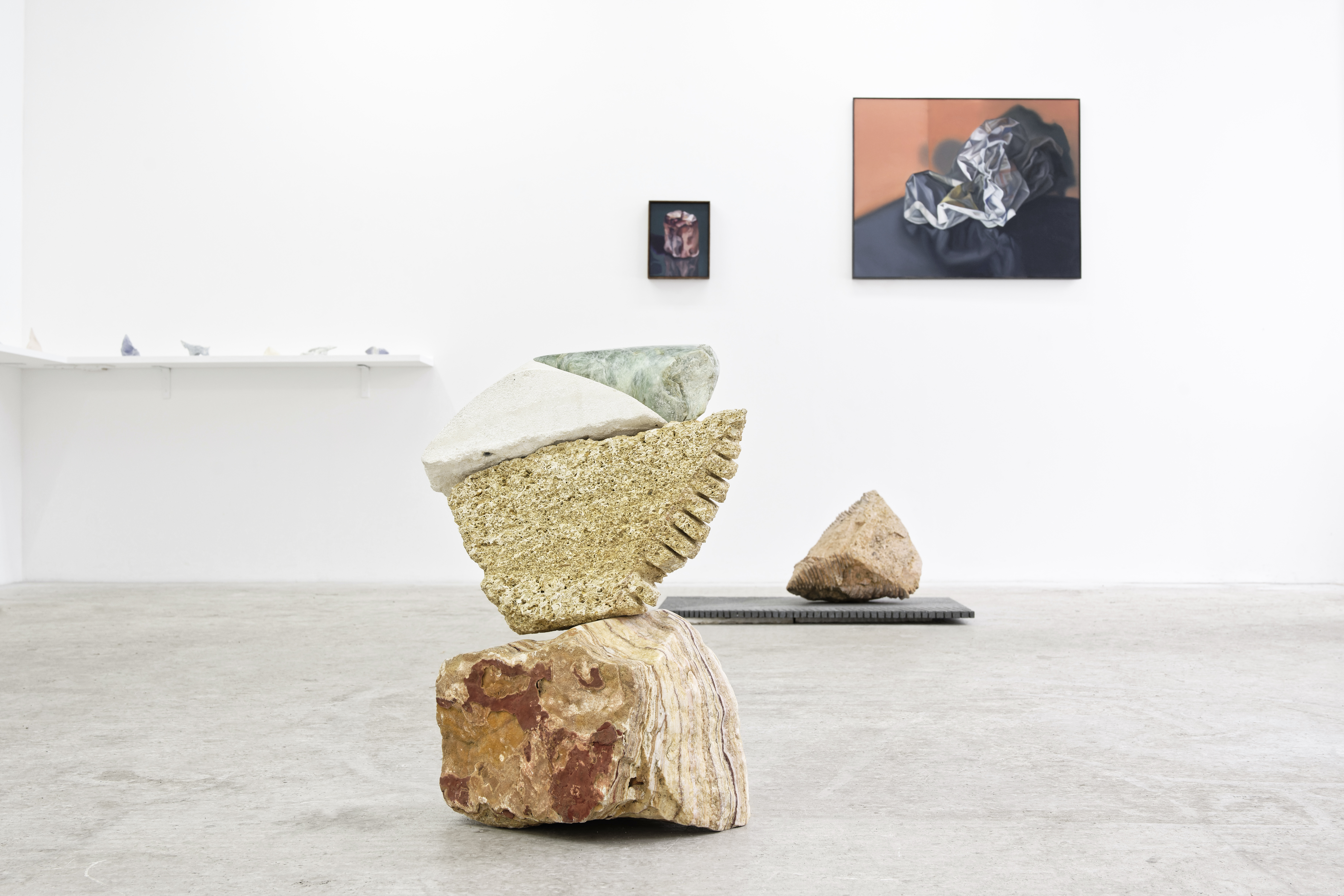 La démarche de Chloé Pechoultres s'apparente à celle de Jean-Jacques Rousseau, et plus précisément à celle des Rêveries du promeneur solitaire. En effet, le résultat concret des œuvres exposéesprocède de la promenade: ajoutons que cette promenade est menée sous le signe de l'étonnement: voici donc la pierre! « Rêveries » est ce mot léger en apparence qui signifie pour l'artiste: travail (« construction de l'imagination »). De même que Jean-Jacques rêve à un livre qu'il écrit: Chloé Pechoultres rêve à des pierres qu'elle porte, assemble, travaille. Il y a aussi la figure de Diderot, qui prête une attention neuve sur les tableaux exposés au salon de 1767. S'agissant des pierres, voici quelques récurrences: « masses informes de pierres », « pierre brute », « massif de pierres », « masses de pierres », « pierres informes dispersées ». Nous ne sommes pas vraiment encore dans le grand réveil romantique européen: cependant, Diderot sait déjà que la pierre (même « informe », peut-être la plus informe des formes) est en elle-même un lieu privilégié du travail de la beauté. Ici, lignes, couleurs, lumières varient parmi les traces discrètes, mais présentes et précises du geste technique de la taille de pierre. Ce geste moderne - la nature telle qu'elle apparait peut intéresser l'artiste - se confond avec un profond sentiment archaïque : la pierre est aussi stele, monolithe, autel, objet de culte. Ces fonctions archaïques nous semblent lointaines, et pourtant les pierres revivent encore et toujours, arrachées au monde souterrain par Chloé Pechoultres.”