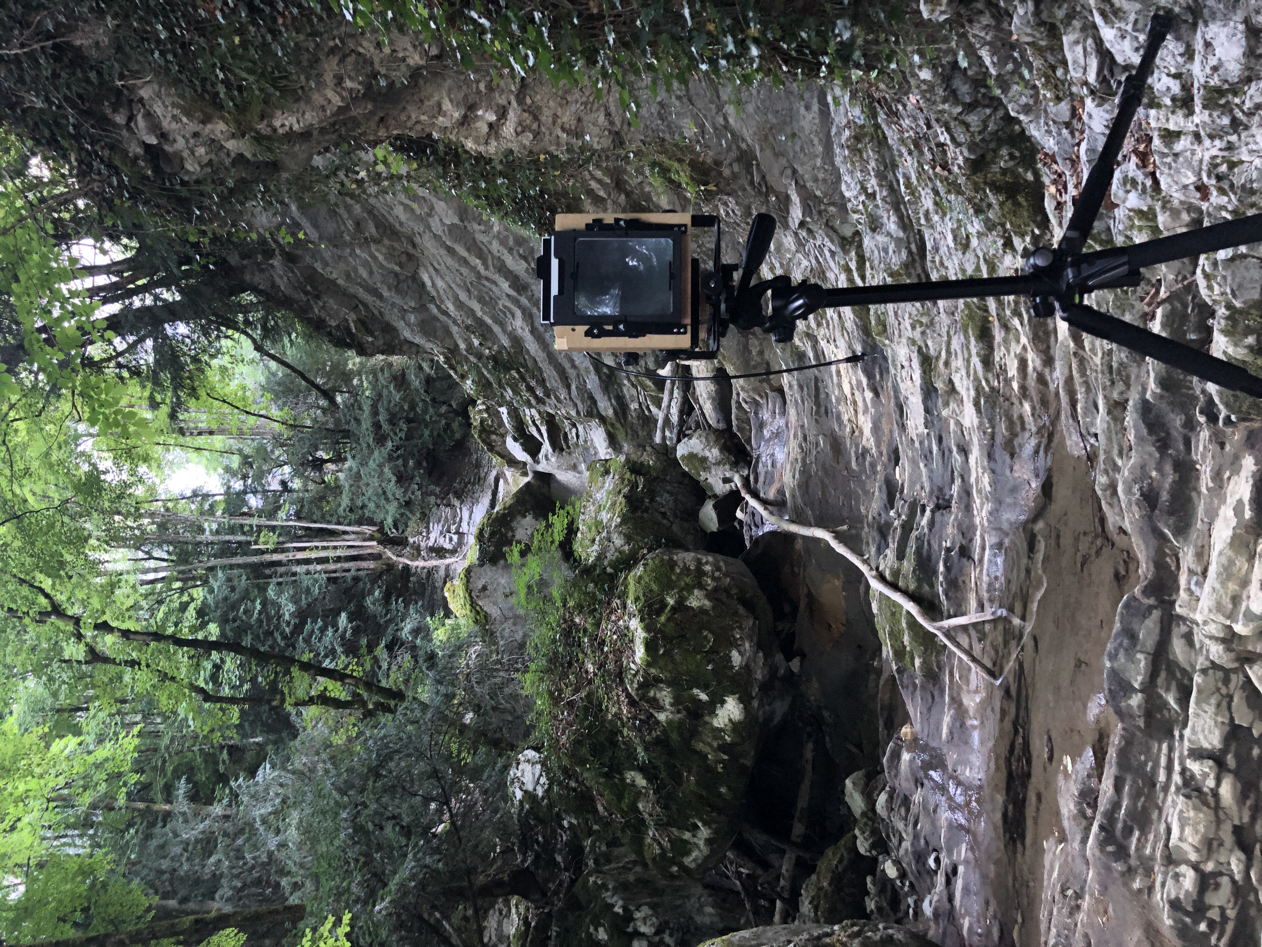 Le critère décisif, ce qui arrête mon pas, c’est un constat simple : la possibilité d’un cadre. À cette fin, le dispositif de prise de vue est des plus précis, puisqu’il s’agit d’une chambre photographique 4 × 5 pouces. Outre la taille de la surface sensible offrant une qualité d’image décuplée par rapport aux autres appareils de prise de vue, il impose un travail lent, conduisant à construire véritablement chaque cliché. De la position depuis laquelle prendre la photographie, en passant par les divers bascules et décentrements appliqués à la lentille, jusqu’aux réglages de l’objectif et au choix de la pellicule : aucune place n’est laissée au hasard.
